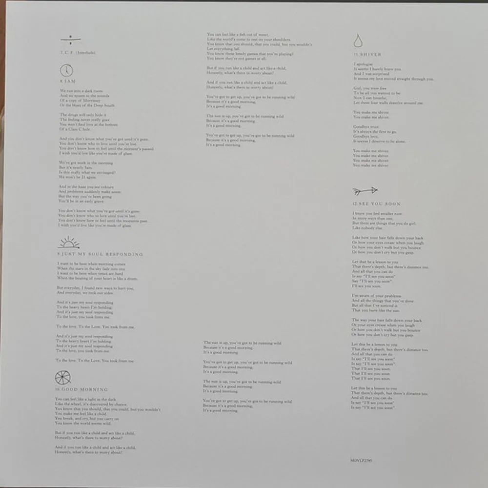Лицензионное издание, выпущенное на виниле. В альбом вошли следующие композиции: I Found, M.F. (Interlude), Spark, Hurricane, Noah, Pilot, C.F. (Interlude), 0.208333333333333, Just My Soul Responding, Good Morning, Shiver, See You Soon