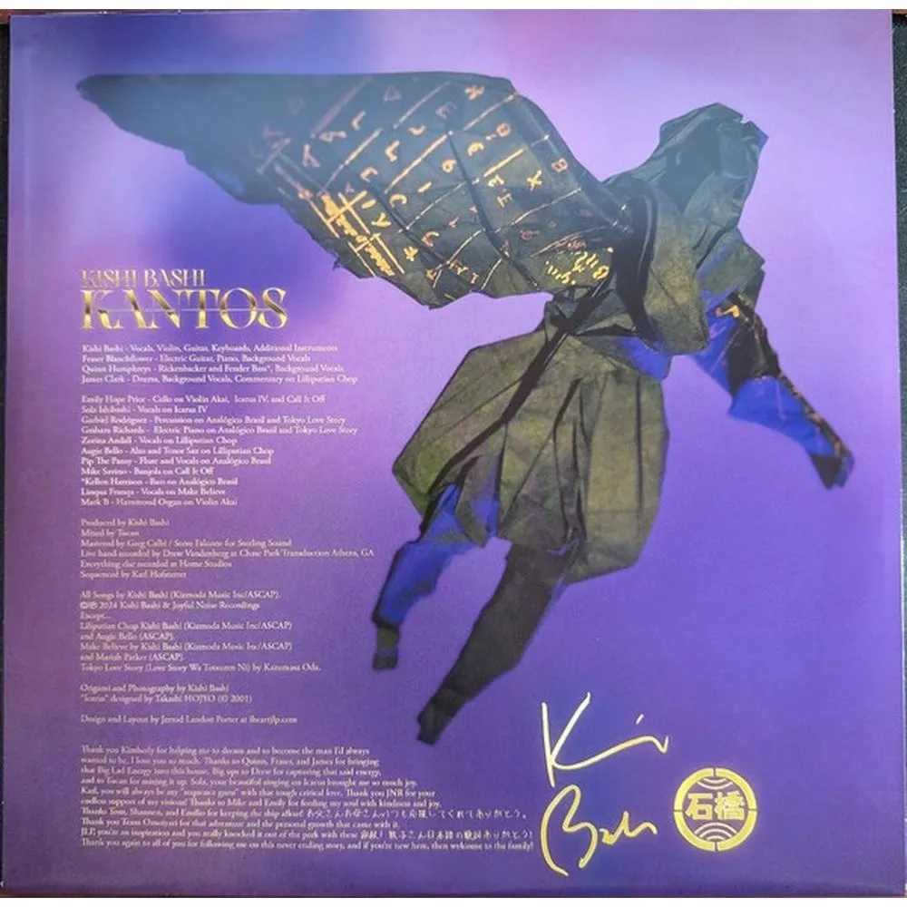 LP — лимитированный фиолетовый винил. Включает фольгированную обложку и внутренний конверт с текстами песен. В записи приняли участие рэпер-активист Линква Франка и саксофонист Оги Белло. Последний полноформатный альбом Киши Баши Kantos, – это произведение изысканной двойственности: альбом-вечеринка о возможном конце человечества, каким мы его знаем, одновременно глубоко тревожный и возвышенно радостный. В отличие от симфонического фолка его альбома Omoiyari 2019 года, получившего признание критиков и ставшего определяющим для его карьеры сборником работ, рожденным из глубоких размышлений о массовом лишении свободы японо-американцев во время Второй мировой войны, пятый студийный альбом родившегося в Сиэтле певца, автора песен и продюсера охватывает всё: от бразильского джаза и фанка 70-х до оркестрового рока и сити-попа (японского жанра, расцвет которого пришелся на середину 80-х). Основанный на столь же калейдоскопической смеси вдохновений — культовой серии научно-фантастических романов «Песни Гипериона» и трудах философа-просветителя XVIII века Иммануила Канта, — роман представляет собой познавательное путешествие к древним руинам на острове Крит, что в конечном итоге становится безудержным восхвалением человеческого духа и всей его дикой сложности. На ранних этапах создания песен для альбома главным намерением Ишибаши было вернуться к своим весьма эклектичным музыкальным корням, отчасти обращаясь к своему джазовому бэкграунду и углубляясь в танцевально-роковые тенденции, которые он развивал ещё будучи соучредителем бруклинской инди-группы Jupiter One. Но вскоре после начала работы над песнями он наткнулся на веб-сайт с искусственным интеллектом, способный сочинять запоминающиеся припевы, основанные на случайном повороте событий, что быстро подтолкнуло к экзистенциальному исследованию, лежащему в основе Kantos. Хотя его размышления об ИИ, трансгуманизме и неспокойной судьбе человечества неизгладимо направляли создание Kantos, Ишибаши тем не менее рассматривает альбом как «не столько предупреждение о подобном высокомерии, сколько праздник тех самых характеристик, которые делают нас людьми: желания, страсти, сочувствия и любви». «Если есть что-то, что я хочу, чтобы люди ушли, когда услышат эту запись, так это чувство волнения по поводу возможностей созданного человеком искусства», - говорит он. «Даже по мере того, как мы узнаем больше обо всех удивительных вещах, которые может сделать ИИ, я думаю, что люди всегда будут на шаг впереди с точки зрения нашего творчества и инноваций. По-прежнему нет предела тому, что мы можем предложить». Их пятый студийный альбом охватывает все: от бразильского джаза, фанка 70-х, оркестрового рока и городской попа. В записи приняли участие рэпер-активист Линква Франка и саксофонист Оги Белло.