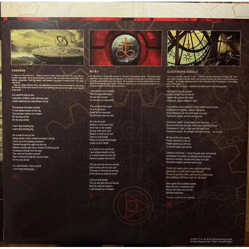 Clockwork Angels — девятнадцатый и последний студийный альбом рок-группы Rush, первоначально выпущенный в 2012 году. Издание на виниле. Альбом получил высокие оценки критиков. Classic Rock назвал Clockwork Angels лучшим альбомом группы за 30 лет. Rush — канадская прогрессив-рок-группа, включающая басиста, клавишника и вокалиста Гедди Ли, гитариста Алекса Лайфсона, а также барабанщика и поэта Нила Пирта. Rush одни из первых в прогрессив-роке начали привносить в свою музыку элементы хард-рока и хеви-метала, став предтечами прог-метала. Музыка Rush являлась источником вдохновения для творчества таких групп, как Metallica, Primus, Rage Against the Machine и The Smashing Pumpkins, а также современных групп прог-метала, таких как Dream Theater и Symphony X. Более 40 миллионов проданных альбомов за 40 лет и постоянно распродаваемые туры сопровождают группу, которая является одним из самых инновационных и популярных рок-феноменов в мире.