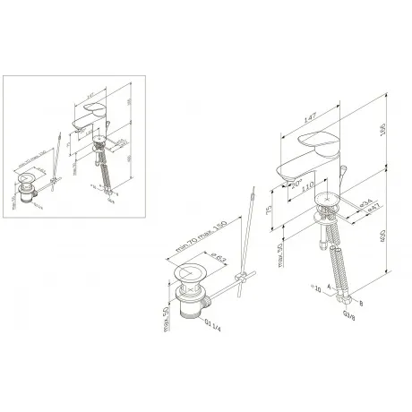 Материал изготовления корпуса - латунь. Гибкая подводка. Способ монтажа - настольный
