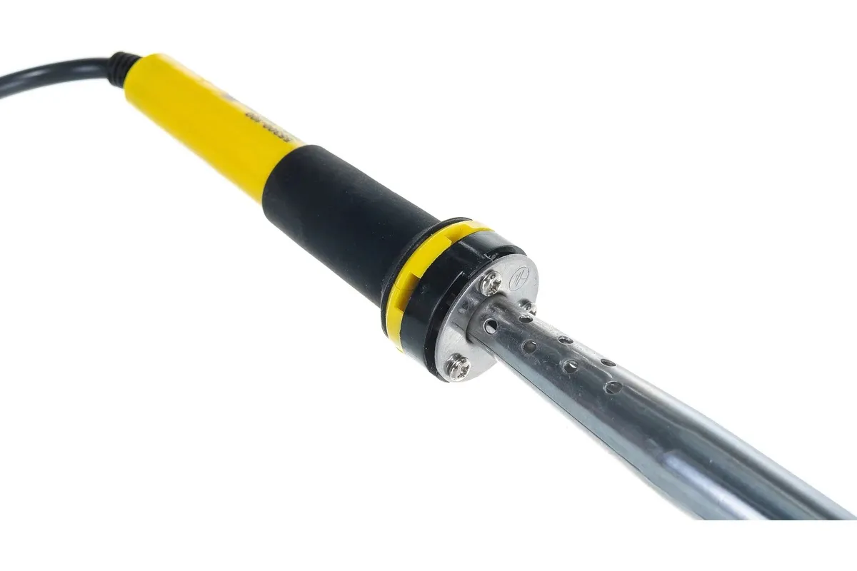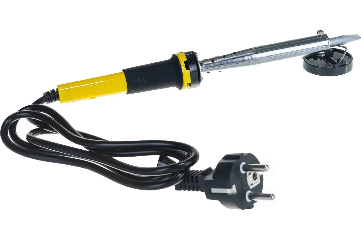Высококачественный нагревательный элемент для быстрого достижения необходимой температуры. Медное жало со специальным покрытием LongLife: качественная пайка и длительный срок службы. Заземляющий провод обеспечивает защиту от поражения электрическим током, а также способствует снятию статического заряда. Удобная и легкая двухкомпонентная рукоятка. Высококачественный припой ПОС61 (15 гр.) и складная подставка в комплекте. Применяется для монтажа электронных компонентов на печатную плату, пайки и лужения медных проводников, отпайки.