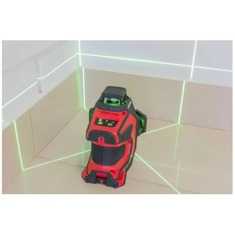 Лазерный нивелир CONDTROL Omniliner 3D G профессиональный лазерный нивелир, способный строить две вертикальные и одну горизонтальную плоскости с углом развертки 360 градусов. Высокая степень защиты IP 65, ударопрочный корпус и большой набор функций позволяют использовать нивелир как в закрытых помещениях, так и на открытых строительных площадках. Нивелир проецирует три ортогональные лазерные плоскости с развёрткой 360°. Пересечение двух вертикальных плоскостей образует точки отвеса (зенит-надир). При помощи кнопки последовательного включения лазерных линий можно выбрать удобный для себя режим работы. Корпус нивелира надёжно защищён от воздействия пыли, влаги и грязи, поэтому может работать в суровых условиях стройплощадки при любой погоде. Таким высоким показателем IP не может похвастаться ни один нивелир другой марки.