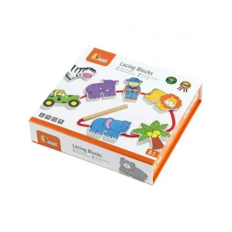 Описание товара Шнуровка "Зоопарк"(12 фигурок,шнурок)в коробке VIGA VG59549