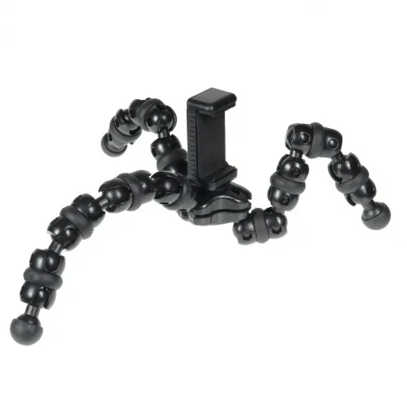 Компактный штатив с гибкими шаровыми ножками – для закрепления камер, осветителей, микрофонов на замысловатых поверхностях: ветках, перилах, дверях и прочих. Нагрузка до 2 кг, максимальная высота 24.5 см, длина в сложенном виде 25 см, в комплект входят адаптеры для смартфонов и экшн-камер GoPro.