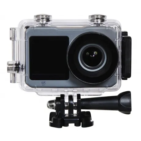 экшн-камера, водонепроницаемый бокс, основное крепление, крепление на руль велосипеда, крепление для плоской поверхности, крепление на шлем, адаптер и неподвижное основание, адаптер-кронштейн 1, адаптер-кронштейн 2, рамка, повязка-бандаж, батарея, USB-кабель, руководство