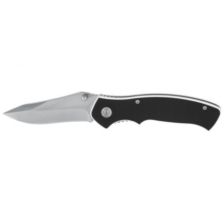 Универсальный нож как для повседневных задач, так и для специальных работ, незаменим в путешествии. Надёжный и неприхотливый в обслуживании. Конструкция ножа традиционная. Замок «лайнер-лок», съёмная клипса. Шпенёк открытия ножа удобен для левши и правши, темляк можно закрепить за нижнюю планку соединения ручек ножа. Надёжное крепление клинка к основанию с возможностью регулировки. Материал рукоятки G10 прочный и ударостойкий, отлично переносит влагу, хорошо поддаётся окраске (в том числе и послойной), отличается повышенной стойкостью к огню и высокой прочностью. Способ обработки пескоструем позволяет получить текстурированную, шероховатую на ощупь поверхность, что позволяет улучшить контроль над инструментом в руке.