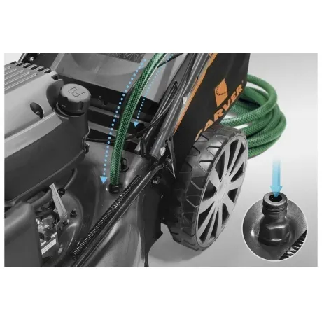 Бензиновая газонокосилка CARVER LMG-3653DMS01.024.00010 служит для кошения, мульчирования и сбора травы на газонах и лужайках. В данной модели предусмотрена система самоочистки AutoWash, позволяющая подключить водопроводный шланг для очистки деки. Для удобства обслуживания травосборник оснащен индикатором наполнения. Агрегат дает возможность осуществлять боковой или задний выброс травы. Газонокосилка имеет самоходный принцип перемещения, благодаря чему можно быстро обрабатывать большие площади.