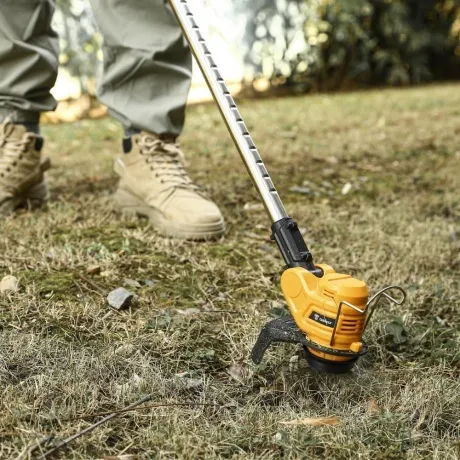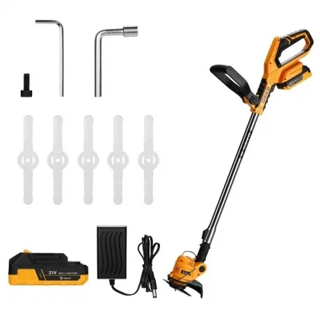 Триммер садовый аккумуляторный DEKO DKTR21 компактная аккумуляторная модель, удобная для скашивания травы в труднодоступных местах, вдоль заборов, клумб, подравнивания газонов, краев садовых дорожек.