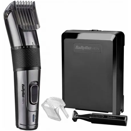 Машинка для стрижки Babyliss E978E с набором насадок позволит не только стричь голову, но и выполнять модельные стрижки и бритье. Емкой батареи хватает на 1 час, а для полной зарядки требуется 8 ч. Длина стрижки удобно регулируется колесиком. Лезвия и рабочие элементы снимаются для удобной чистки.