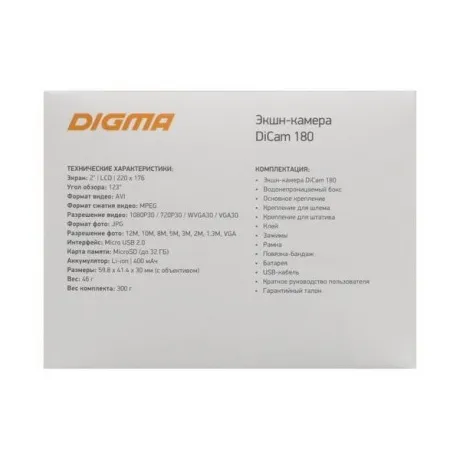 Экшн-камера Digma DiCam 180 Grey DC180 - этот товар вы можете купить по цене 1955 руб. в интернет-магазине КотоФото. Характеристики, описание товара, фото и цена представлены на карточке товара. Заказать товар вы можете по телефону 8(812)426-98-99 в Саратове.