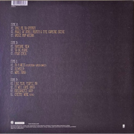 Hozier - дноименный дебютный студийный альбом ирландского певца Hozier. Эндрю Хозиер-Бирн (род. 17 марта 1990, Брей, графство Уиклоу, Ирландия), выступающий под сценическим именем Hozier, — ирландский музыкант, автор-исполнитель. Эндрю Хозиер-Бирн родился в Брее, в семье музыкантов. После окончания школы он поступил в Тринити-колледж, чтобы изучать музыку, но бросил его спустя полгода, чтобы сделать свои первые демозаписи для Universal Music. Во время учёбы он был членом оркестра колледжа Trinity Orchestra; с 2008 по 2012 год состоял в хоровой группе Anuna, с которой участвовал в гастрольных турах по Европе. В 2013 году Хозиер выпустил мини-альбом Take Me to Church, одноимённая композиция стала его прорывом после того, как видео с ней стало популярным на YouTube. Песня смогла возглавить ирландский чарт iTunes и добраться до 2 места в Irish Singles Chart 25 октября 2013 года. Далее последовал второй мини-альбом From Eden, участие в различных музыкальных фестивалях и выступления в США, включая Victoria’s Secret Fashion Show 2014. Первый студийный альбом Hozier появился в свет 19 сентября 2014 года. В него вошли синглы с предыдущих релизов — «Take Me to Church», «Work Song» и «From Eden».