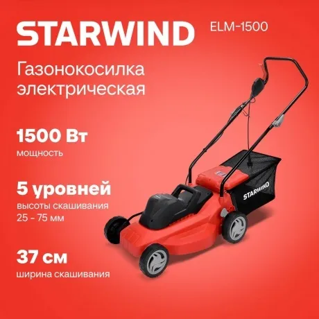 Описание товара Газонокосилка роторная Starwind ELM-1500 1500Вт