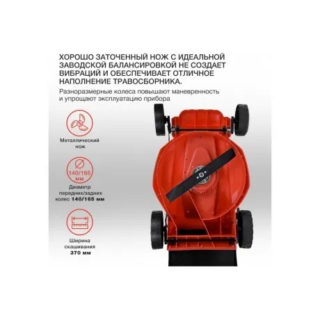 Добейтесь идеального вида вашего участка с помощью электрической роторной газонокосилки Starwind ELM-1500. Этот надежный и удобный инструмент поможет быстро сделать газон на участке идеально ровным. Starwind ELM-1500 оснащен электрическим двигателем мощностью 1500 Вт и частотой вращения до 3500 об/мин. – достаточными для скашивания даже густой травы. Режущим элементом у данной модели является роторный нож, а диаметр кошения равен 370 мм. Прибор имеет пять уровней скашивания травы: 25, 38, 50, 65 и 75 мм. Вся скошенная трава попадает в специальный травосборник, предусмотренный на задней части ELM-1500. Он вмешает до 35 л травы и оборудован удобной эргономичной ручкой, облегчающей его опустошение. Рукоять же самого прибора имеет складное строение, что значительно облегчает хранение ELM-1500. Рычаг для активации косилки встроен в верхнюю её часть таким образом, чтобы до него легко можно было дотянуться пальцами. Для более безопасной эксплуатации, газонокосилка также оснащена системой защиты от случайного запуска. Легкому и удобному управлению ELM-1500 способствует наличие у косилки сразу четырёх колес и ее небольшой вес. Starwind ELM-1500 – это надежное, эффективное и удобное решение для ухода за вашим газоном. Подарите своему газону идеальный вид с этой универсальной газонокосилкой!