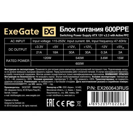 Отзывы о товаре Блок питания ExeGate 600W 600PPE black (EX260643RUS-PC)