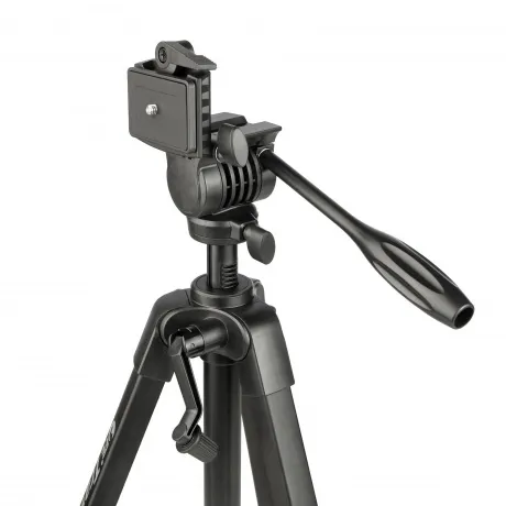 Видеоштатив Falcon Eyes Travel Line VT3 – легкий универсальный 4-х секционный штатив с 3D-головкой, быстросъемной площадкой и выдвижной центральной колонной. Максимальная высота штатива 1.6 м, минимальная – 0.5 м. Предназначен для фиксации DSLR камер весом до 3 кг. Инструмент для выездной съемки Штатив Travel Line VT3 может стать отличным инструментом для выездной съемки: легкий вес (всего 1 кг), компактные габариты (в сложенном виде 53,5 см) и чехол в комплекте обеспечат удобство транспортировки и хранения. 3D голова с быстросъемной площадкой 3D голова оснащена быстросъемной площадкой (42х64 мм) с популярной установочной резьбой 1/4”. В основании головы расположен винтовой фиксатор горизонтального панорамирования и винтовой фиксатор угла наклона. Также для фиксации камеры и быстрого наведения «на цель» предусмотрена съемная ручка штатива длиной 17.5 см. Микролифт, пузырьковый уровень и крюк для груза Штатив оснащен микролифтом центральной колонны, пузырьковым уровнем и крюком для груза. Реечный микролифт позволяет плавно регулировать высоту штатива без необходимости перенастройки положения ног. Рукоятка микролифта складывается после регулировки и не мешает съемке или транспортировке. Положение микролифта фиксируется винтом. С помощью пузырькового уровня легко выравнивать положение штатива относительно горизонтальной плоскости при его установке на неровной поверхности. Крюк для груза повышает устойчивость штатива за счет подвешивания на нем утяжелителя, что может потребоваться при съемке в сложных погодных условиях. 4 секции ног Тренога штатива выполнена из алюминия и имеет 4 выдвижные секции диаметром 23 / 20 / 17.5 / 15 мм, а также клипсы из ABS пластика. Растяжка с плавным тугим ходом, расположенная в верхней части штатива, обеспечивает дополнительную жёсткость при фиксации его положения. На концах ног установлены резиновые наконечники, которые не скользят и не царапают поверхность пола.