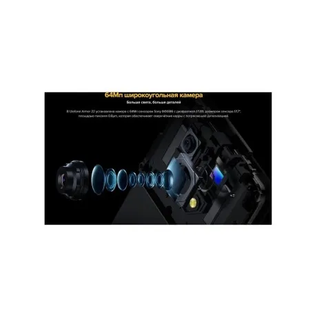 Ulefone Armor 22 в толщину всего 15мм, но обладает защитой. Металлические вставки по бокам с перфорацией обеспечивают надёжный хват. Линзы камера защищает специальная металлическая оправа. Ulefone Armor 22 соответствует стандартам защиты IP68, IP69K и MIL-STD-810H, создан для эксплуатации в самых суровых условиях среды. Будучи защищённым от воздействий влаги, ударов и падений, он отлично подойдёт для промышленной эксплуатации, строительства, транспорта, многодневных походов и различных рабочих профессий. В Ulefone Armor 22 установлен модуль из двух камер: 64Мп широкоугольной и 64Мп ночной камеры. Новые возможности съёмки, ИК-светодиоды, новая вспышка, новый уровень технологий. Мощные ИК светодиоды позволяют снимать в полной темноте. Передовой 64Мп сенсор вкупе с алгоритмом постобработки NightElf Ultra 2.0 минимизируют количество шумов в кадре. В условиях слабого освещения и даже в полной темноте, камера обеспечивает высокодетализированные кадры, позволяет запечатлеть движение в ночном лесу, рассмотреть не затушенный костёр или окурок. В Ulefone Armor 22 установлена 8Мп селфи камера, которая обеспечивает высокодетализированные, резкие кадры, видеозвонки в высоком качестве. Включите режим подводной съёмки, чтобы запечатлеть потрясающие пейзажи под водой. 8-ядерный процессор MediaTek Helio G96 с тактовой частотой 2.05 ГГц, обеспечивает Ulefone Armor 22 быструю, плавную работу без фризов игр и приложений. Ulefone Armor 22 можно использовать в качестве универсального пульта ДУ для ТВ, кондиционеров, любых других устройств, управляемых с помощью ИК пульта. Поддержка всех глобальных диапазонов частот 4G, позволяет Вам путешествовать по всему миру и оставаться на связи в любой стране. Обеспечиваются звонки в HD-качестве и высокая скорость передачи данных.