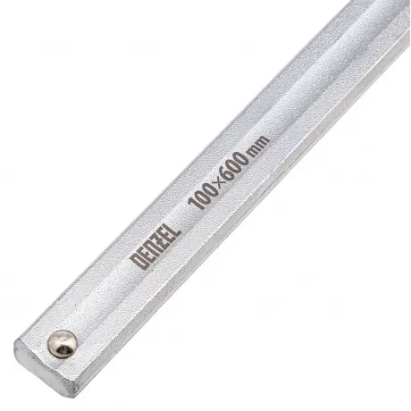 Кованая F-образная струбцина Denzel 20472 с глубиной зажима 100 мм, усиленная, предназначена для фиксации деталей шириной до 600 мм и материалов при проведении слесарных, столярных и сварочных работ. Тавровый профиль обеспечивает устойчивость конструкции к изгибу, что позволяет фиксировать детали со значительным усилием.