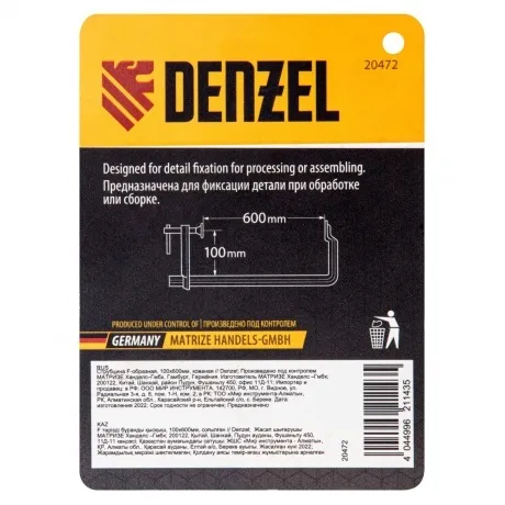 Описание товара Струбцина F-образная, 100x600мм, кованая Denzel