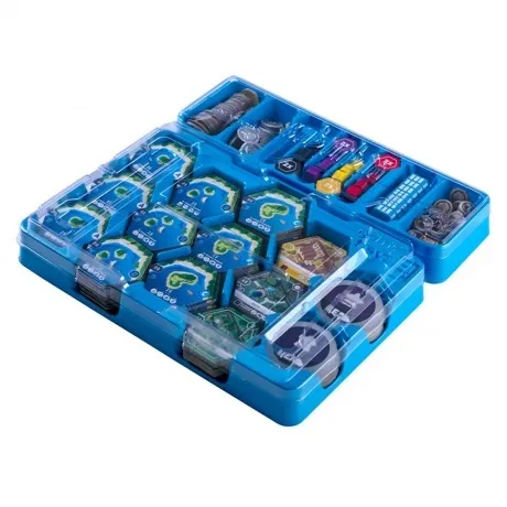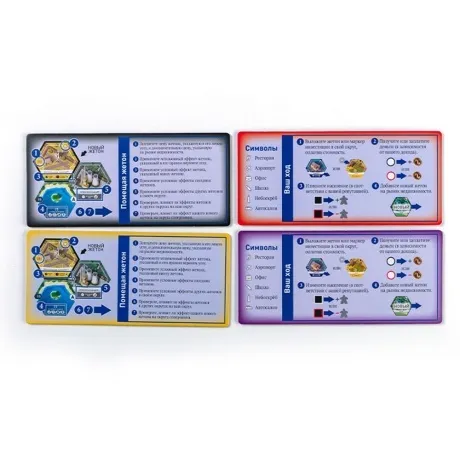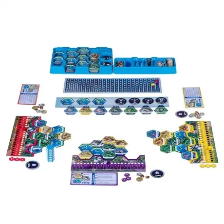 2 органайзера с крышкой от Game Trayz, поле рынка, счётчик населения, 100 жетонов построек, 24 базовых жетона, жетон «Ещё один раунд», 20 жетонов целей, маркер первого игрока, 70 жетонов монет, 4 планшета округов, 4 цилиндра дохода, 4 кубика репутации, 4 фишки населения, 4 памятки, 12 маркеров инвестиций, правила игры, приложение.