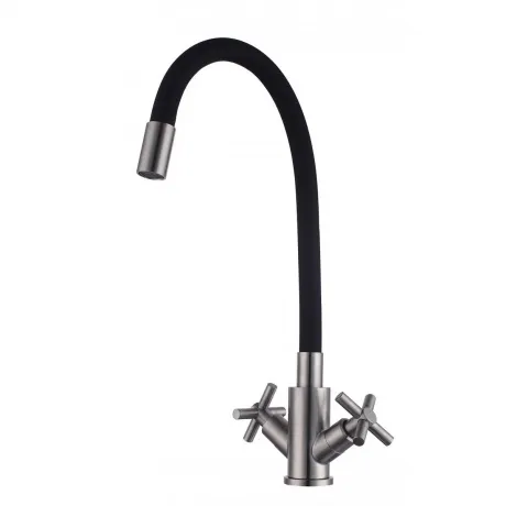 Смеситель Fmark FS8442-01 для кухонной мойки сочетает современный дизайн и функциональность. Модель с гибким поворотным изливом выполнена из нержавеющей стали в сатинированно-черном цвете, подходит для настольного монтажа. Двухрычажное управление с керамической кран-буксой обеспечивает плавную регулировку воды. Комплектуется креплением и гибкой подводкой