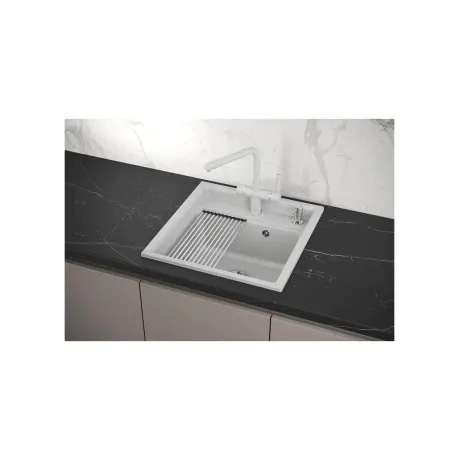 Мойка российского производителя Granula - Вместительная и функциональная чаша, удобная в использовании и простая в уходе! Изготовлена из кварцевого песка и устойчива к царапинам, абразивам, а также к механическим ударам. Форма чаши адаптирована под функциональный ролл-мат. Легко моется и не боится пятен. Устойчива к высоким температурам и идеально прилегает к столешнице.
