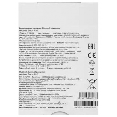 Описание товара Наушники Realme Buds Air 6, зеленый