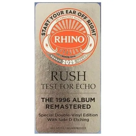 Test for Echo — шестнадцатый студийный альбом канадской рок-группы Rush, выпущенный в 1996 году. Издание на виниле.. Test for Echo достиг 5-го места в чартах Billboard, а заглавный трек с него достиг 1-го места в основных рок-чартах. Rush — канадская прогрессив-рок-группа, включающая басиста, клавишника и вокалиста Гедди Ли, гитариста Алекса Лайфсона, а также барабанщика и поэта Нила Пирта. Rush одни из первых в прогрессив-роке начали привносить в свою музыку элементы хард-рока и хеви-метала, став предтечами прог-метала. Музыка Rush являлась источником вдохновения для творчества таких групп, как Metallica, Primus, Rage Against the Machine и The Smashing Pumpkins, а также современных групп прог-метала, таких как Dream Theater и Symphony X. Более 40 миллионов проданных альбомов за 40 лет и постоянно распродаваемые туры сопровождают группу, которая является одним из самых инновационных и популярных рок-феноменов в мире.