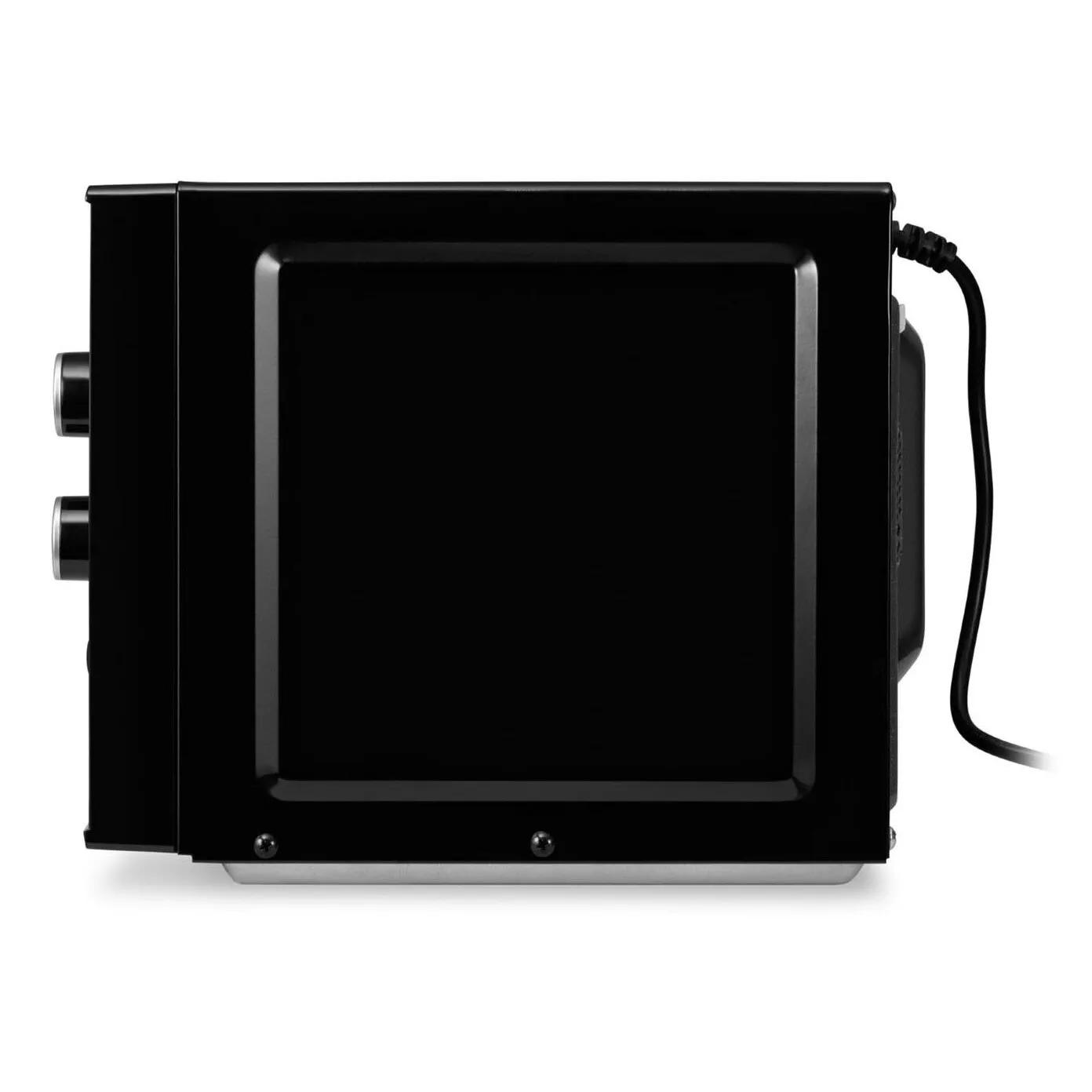 Микроволновка Hyundai HYM-D3032 сделана в минималистичном хайтеч-дизайне в чёрном исполнении. Настройка режимов тепловой обработки происходит с помощью передней панели. На ней у прибора расположен яркий ЖК-экран для визуализации параметров. Под ним находится колесо переключения мощностей. Устройство может автоматически размораживать пищу, готовить блюда согласно имеющимися во встроенном меню программам, а также запускаться по отложенному таймеру. Чтобы обезопасить Hyundai HYM-D3032 от детей, в СВЧ-печи предусмотрена соответствующая функция. Над кнопкой блокировки сделано три клавиши для установки таймера, выбора пункта меню и «стоп». Выше них располагается ещё одно колесо – оно помогает установить интервал разогрева и запустить его. Максимальная мощность Hyundai HYM-D3032 составляет 700 Вт, а внутренний объём – 20 л. Этот сочетания достаточно для равномерного разогрева даже большой порции еды, рассчитанной на несколько человек. В конце каждого цикла печь производит громкий звук. За прибором легко ухаживать, а управление им интуитивно и понятно каждому. С возникающими вопросами помогает справиться полностью русифицированная инструкция, поставляемая с данной моделью в комплекте.