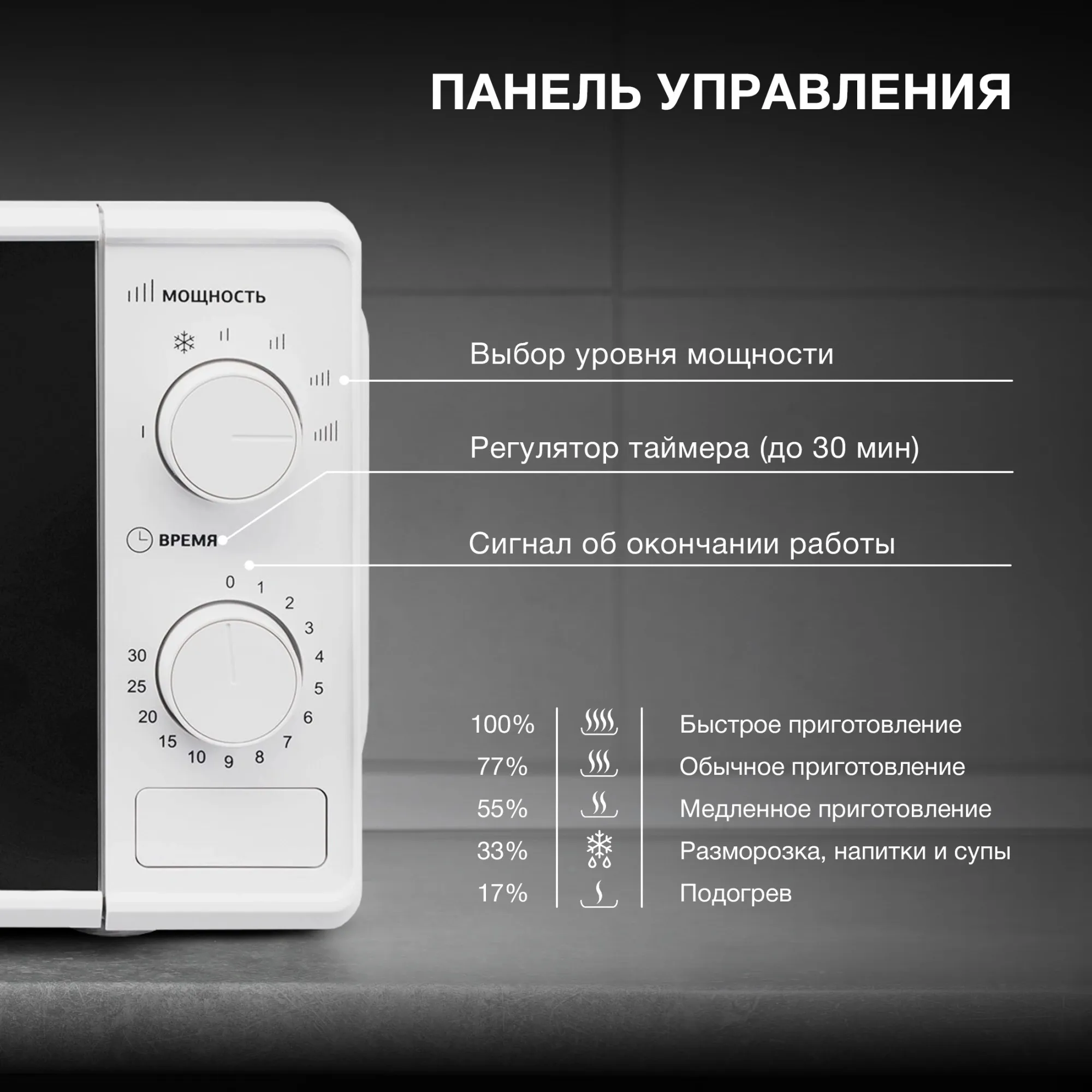 Описание товара Микроволновая печь Hyundai HYM-M2044 20л. 700Вт белая