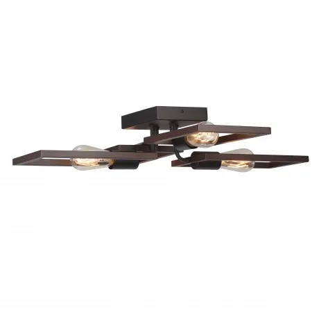 потолочная люстра с четырьмя плафонами, предназначенная для помещений площадью до 12 кв.м. металлическое основание, цоколи e27 под лампы накаливания максимальной мощностью 40 вт каждая. общая мощность 160 вт, напряжение 220 в. подходит для стиля лофт, габариты 68?69.5?13.5 см. вес конструкции 2.4 кг. лампы в комплект не входят. простое крепление к потолку.