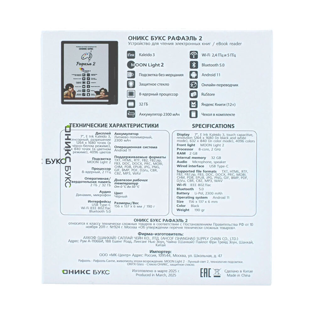 Компактный ридер с 7-дюймовым цветным экраном E Ink Kaleido 3 с подсветкой и сенсорным управлением. Модель базируется на современном 8-ядерном процессоре и имеет 2 ГБ оперативной памяти. Ридер работает под управлением операционной системы Android 11 и позволяет устанавливать и использовать различные дополнительные приложения. На устройстве имеется магазин RuStore, в каталоге которого представлено более 40 тысяч программ. На ридере предустановлено множество полезных приложений, включая онлайн библиотеку Яндекс Книги (12+). Встроенный модуль Wi-Fi позволяет пользоваться различными сетевыми сервисами и скачивать книги напрямую с ридера. Поддержка Bluetooth дает возможность подключить различные внешние устройства. С помощью программы-аудиоплеера можно слушать аудиокниги и музыку, имеется функция озвучивания текста голосом Text-To-Speech. Ридер выполнен в тонком компактном корпусе с кнопками управления на боковой стороне и поставляется в комплекте с защитным чехлом. Благодаря увеличенному экрану и способности отображать цвета модель станет отличным выбором для тех, кто планирует совмещать чтение книг и комиксов с работой с документами, имеющими цветные изображения.