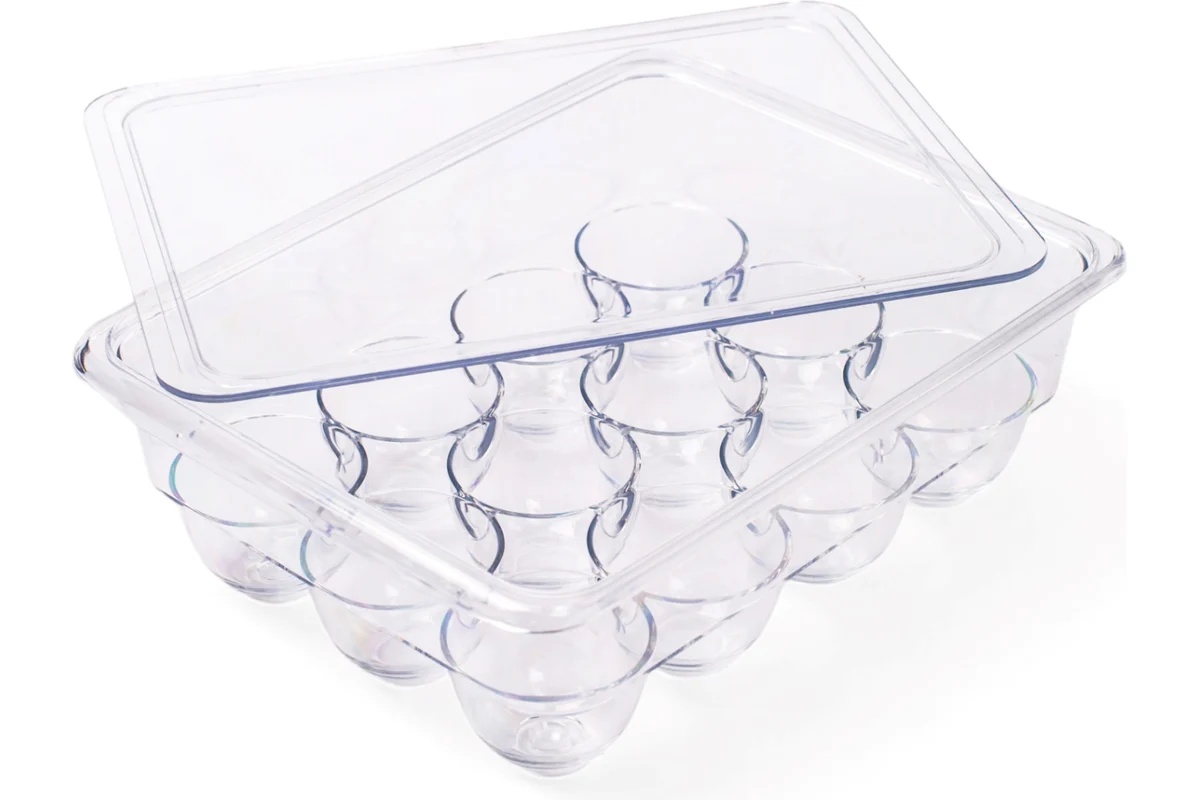 Контейнер изготовлен из прочного пластика, который не деформируется при ударах и падениях, обеспечивая сохранность яиц внутри.