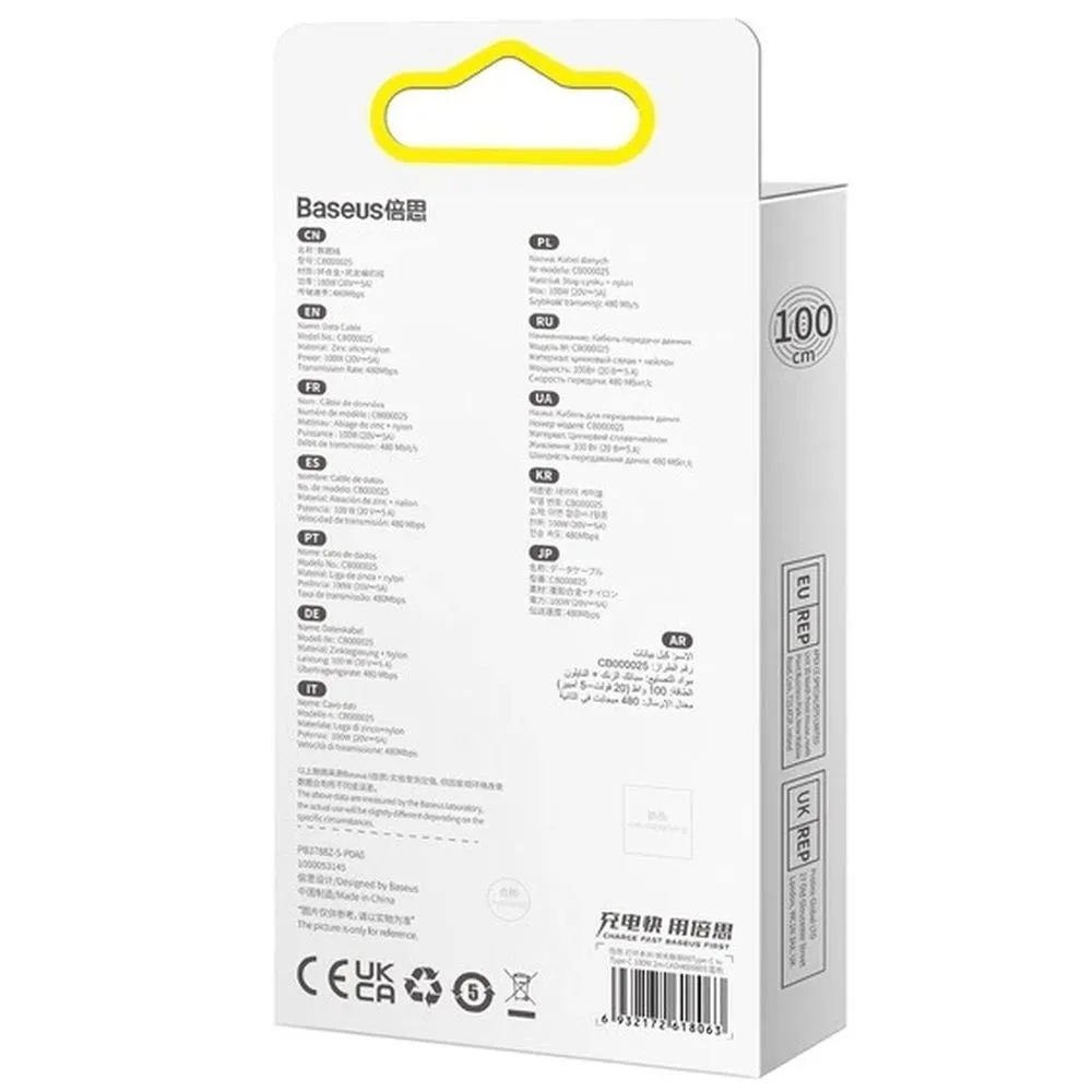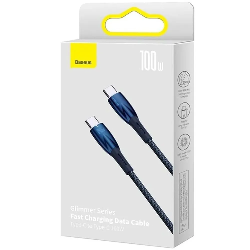 Кабель USB-C/USB-C Baseus Glimmer может мгновенно питать смартфоны, планшеты, ноутбуки и игровые консоли мощностью до 100 Вт. Кабель длиной 1 метр оснащен индикатором Halo и интеллектуальным чипом E-Marker для обеспечения безопасного использования. Продукт совместим с устройствами, оснащенными портом USB-C.