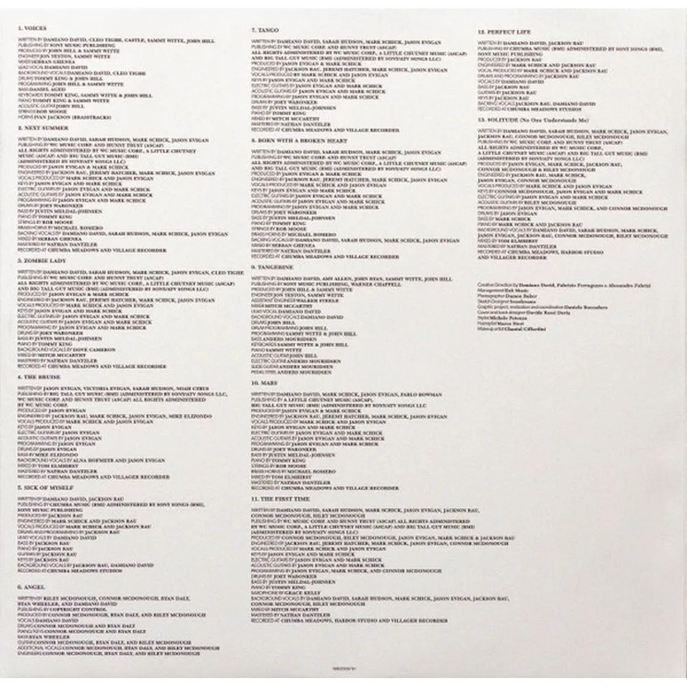 Известный итальянский певец, фронтмен итальянской рок-группы M?neskin, победившей на Евровидении-2021, Дамиано Дэвид выпускает свой первый сольный альбом Funny Little Fears. Первый сольный проект Дамиано был принят поклонниками по всему миру с огромным энтузиазмом. Funny Little Fears содержит 14 уникальных треков, включая мировой хит Born With A Broken Heart и последний сингл Next Summer, мощный и эмоциональный трек. "Я всегда боялся высоты, того, что земля может уйти у меня из-под ног в любой момент, и все может исчезнуть за секунду. Я боялся темноты, необъятности, которую я не могу увидеть или понять, которая может поглотить меня, если я не буду осторожен в том, куда иду. Я боялся себя, потому что просил слишком многого и стремился к чему-то, чего даже не знал, действительно ли я хочу. И, честно говоря, мне все еще иногда страшно, но я написал себе руководство. Надеюсь, оно вам тоже пригодится. Я назвал его «Funny Little Fears»", - Дамиано.