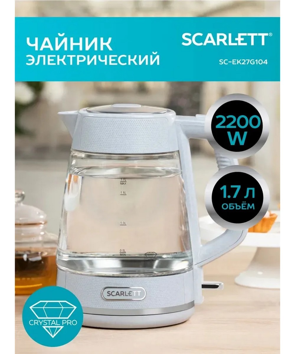Описание товара Чайник электрический Scarlett SC-EK27G104 белый