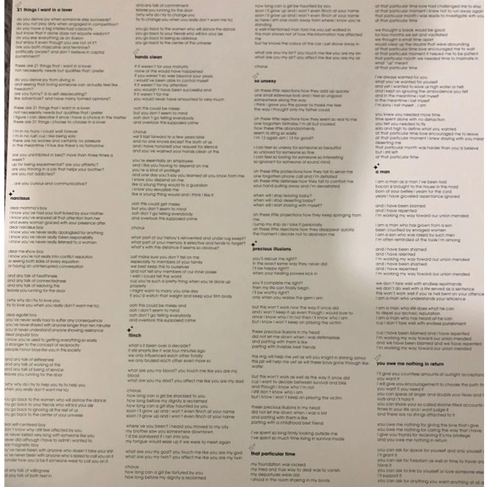 21 Things I Want In A Lover, Narcissus, Hands Clean, Flinch, So Unsexy, Precious Illusions, That Particular Time, A Man, You Owe Me Nothing In Return, Surrendering, Utopia