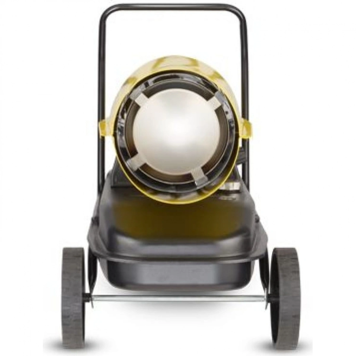 Дизельная тепловая пушка прямого нагрева. Используется в нежилых объектах с постоянной вентиляцией воздуха. Защита от перегрева, регулировка температуры. Объём топливного бака - 38л. Непрерывное время работы - 9 ч. Площадь обогрева -500 м2.