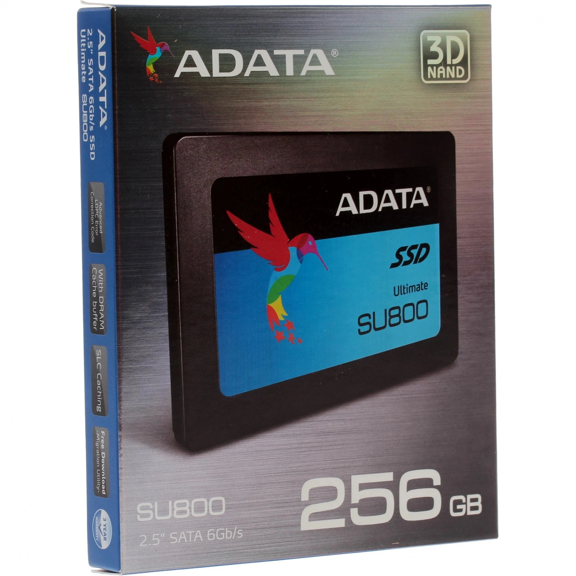 256 ГБ SSD-накопитель ADATA SU800 [ASU800SS-256GT-C] с контроллером Silicon Motion SM2258 выполнен в форм-факторе 2.5 дюймов. Имеющий в основе флеш-память 3D NAND модуль долговременной памяти станет практичным решением для ноутбука, в том числе имеющего игровую направленность. Он подключается к интерфейсу SATA III и обеспечивает компьютеру 256 Гб дискового пространства для размещения любого пользовательского контента, включая программы и ресурсозатратные видеоигры. Тонкий и компактный твердотельный накопитель ADATA SU800 [ASU800SS-256GT-C] является современным и продвинутым аналогом жесткого диска, позволяющим считывать и записывать данные на более высокой скорости. Скорость чтения данных в этой модели достигает серьезной цифры в 550 Мбайт/с, а запись информации происходит на скорости в 500 Мбайт/с. Обладая увеличенным по сравнению с SSD-модулями прежних поколений сроком службы и выгодной ценой, такой накопитель завоевал себе популярность у геймеров и любителей тюнинга ПК в целом.