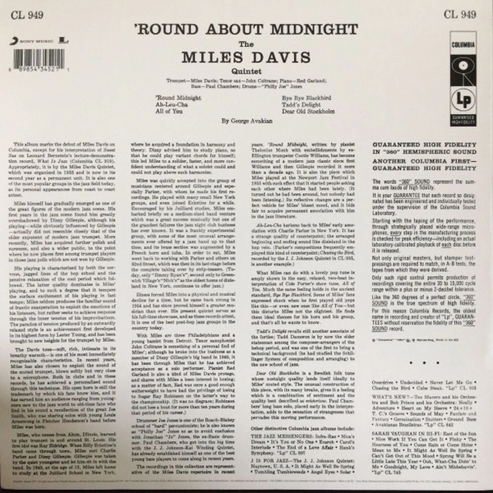 Miles Davis - Round About Midnight (0889854345211) виниловая пластинка - этот товар вы можете купить по цене 3184 руб. в интернет-магазине КотоФото. Характеристики, описание товара, фото и цена представлены на карточке товара. Заказать товар вы можете по телефону 8(812)426-98-99 в Санкт-Петербурге.