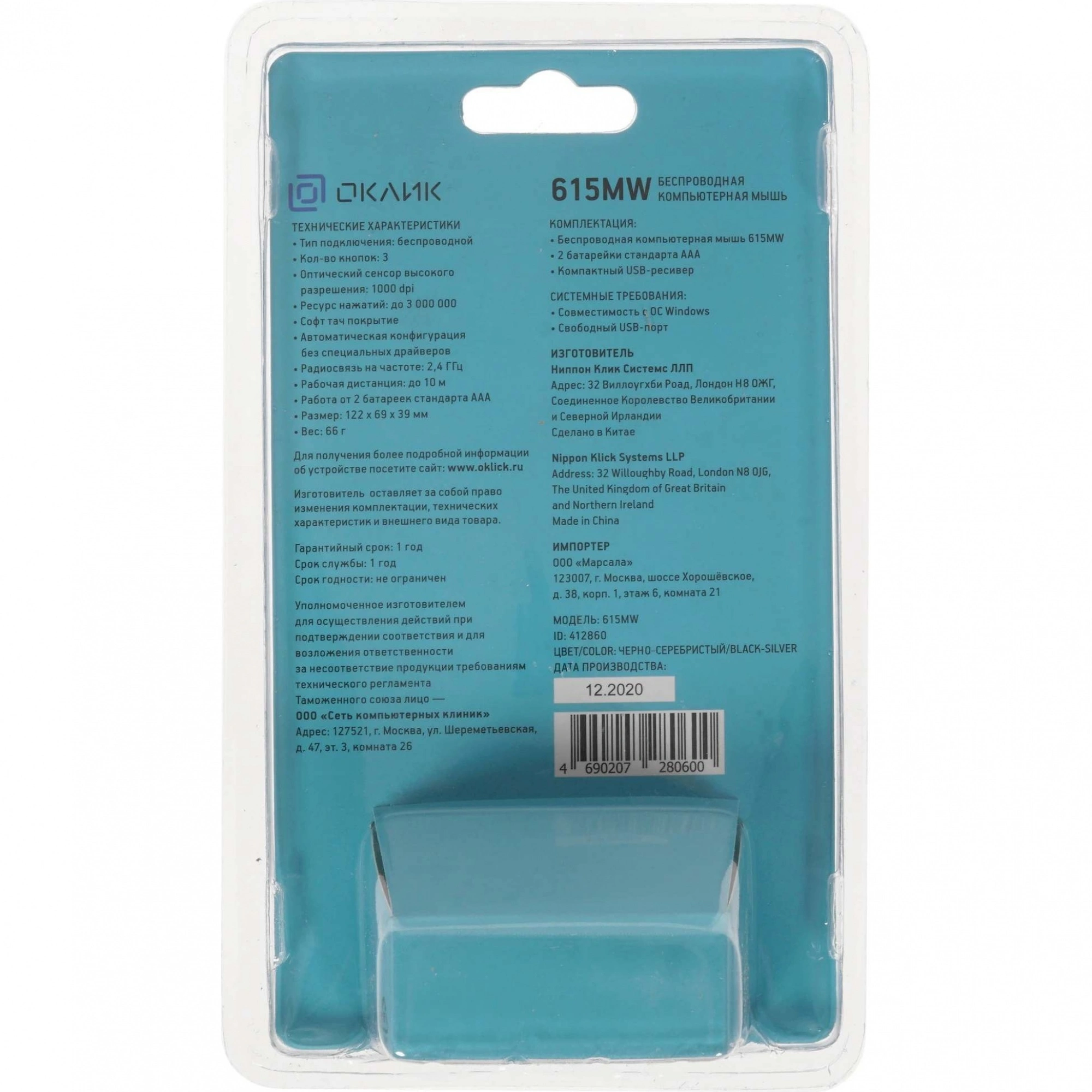 Мышь Oklick 615MW – беспроводная модель, которая подключается к компьютеру с помощью миниатюрного USB-адаптера и поддерживает устойчивое соединение на расстоянии до 10 метров. Применение современных энергосберегающих технологий позволяет ей длительное время работать от одного комплекта батареек. Оптимальная чувствительность сенсора (1000 dpi) делает устройство подходящим для работы с самыми разными приложениями, включая графические и текстовые редакторы, браузеры и игры. Симметричный корпус с мягким покрытием позволяет надежно удерживать мышку как правой, так и левой рукой.