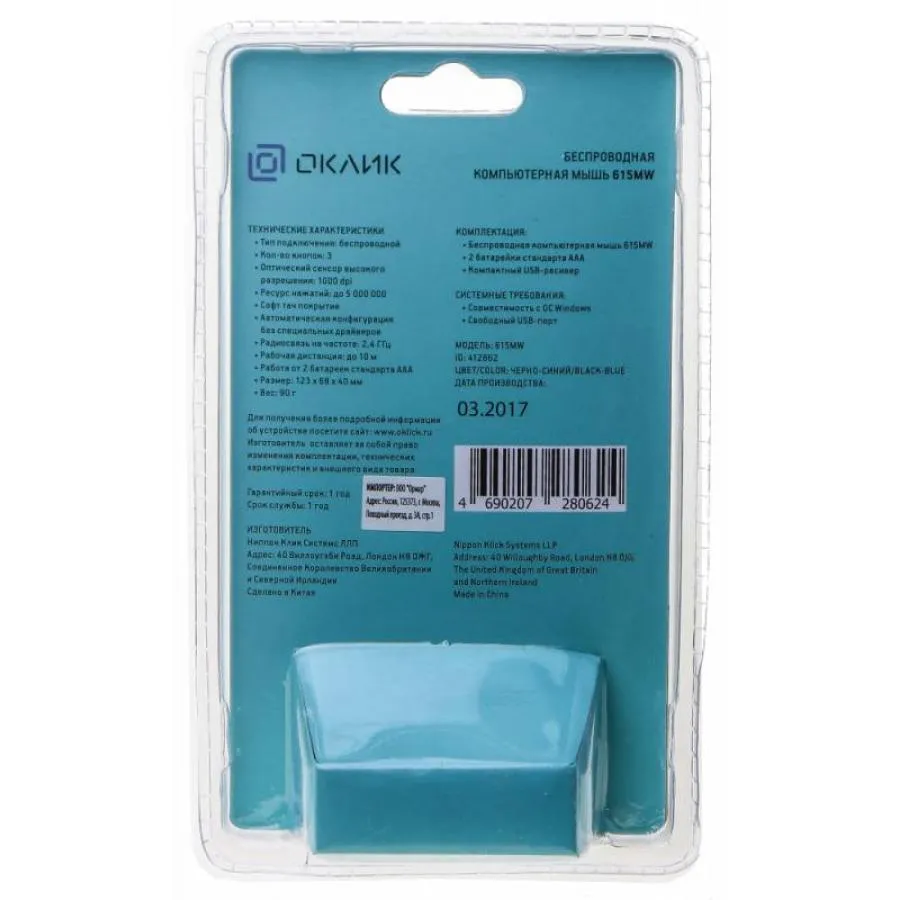 Мышь Oklick 615MW – беспроводная модель, которая подключается к компьютеру с помощью миниатюрного USB-адаптера и поддерживает устойчивое соединение на расстоянии до 10 метров. Применение современных энергосберегающих технологий позволяет ей длительное время работать от одного комплекта батареек. Оптимальная чувствительность сенсора (1000 dpi) делает устройство подходящим для работы с самыми разными приложениями, включая графические и текстовые редакторы, браузеры и игры. Симметричный корпус с мягким покрытием позволяет надежно удерживать мышку как правой, так и левой рукой.