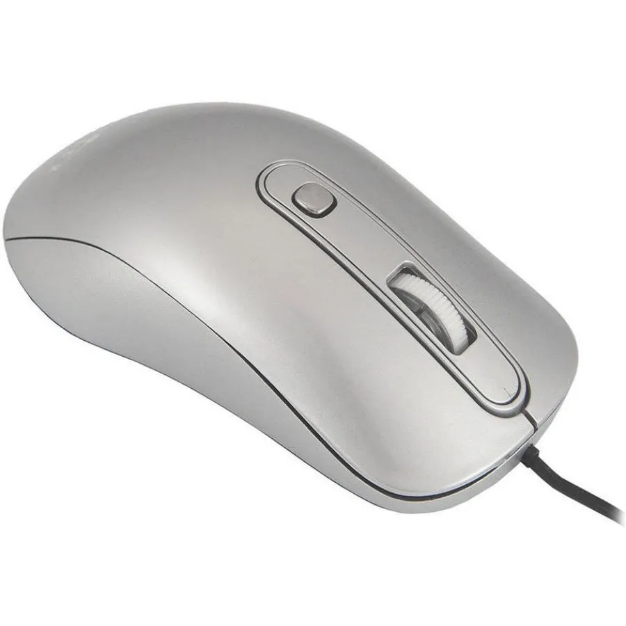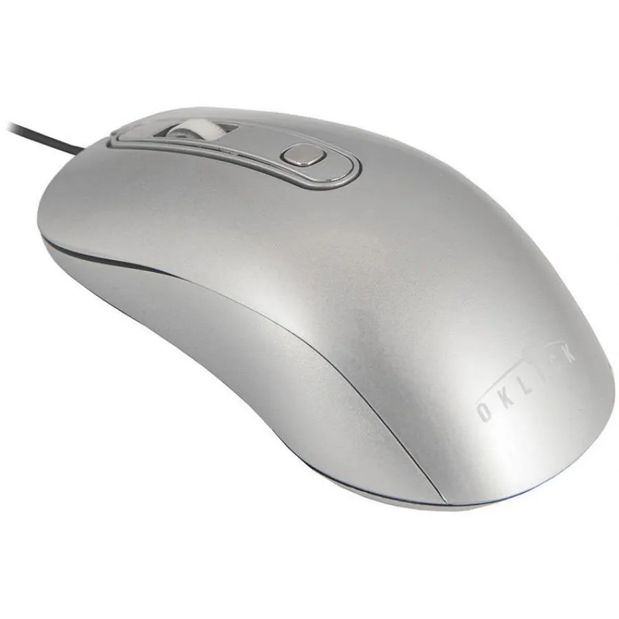 Мышь проводная Oklick 155M серебристый имеет, помимо двух стандартных кнопок и колесика прокрутки, дополнительную небольшую клавишу, позволяющую изменять разрешение оптического сенсора. Сенсор манипулятора, подходящего для любого офисного, домашнего ПК или ноутбука, может работать в режимах 1000 dpi и 1600 dpi. Дизайн корпуса устройства, выполненного из матового серебристого пластика, предполагает управление мышью правой рукой.Модель Oklick 155M относится к числу привычных проводных манипуляторов и использует для присоединения к ПК кабель длиной 1.5 м и интерфейс USB. Подключенное к ПК устройство получает необходимое для работы сенсора питание по шине. Вес манипулятора составляет 118 граммов. Основная техническая документация, относящаяся к этому оптическому манипулятору, находится в упаковке вместе с устройством.