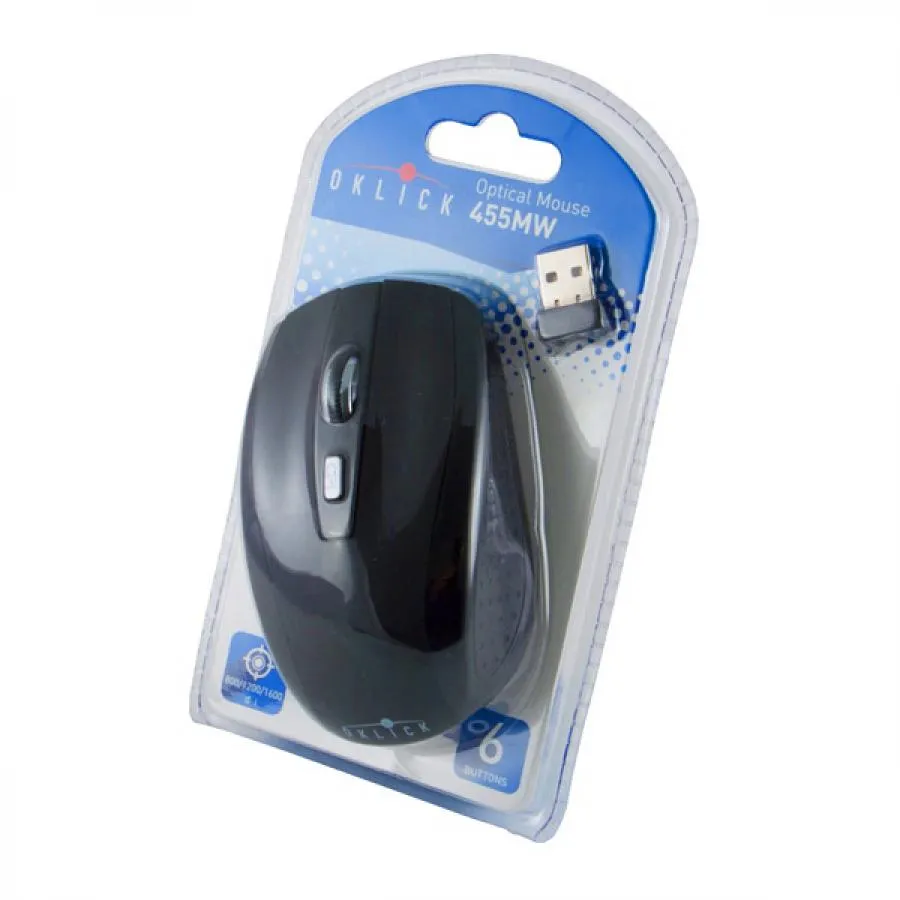 Компактная мышь Oklick 455MW имеет чёрный матовый корпус с глянцевыми вставками и прорезиненными боковыми поверхностями. Для работы этого беспроводного устройства потребуется всего 2 батарейки типа AАA. Обустроен гаджет пятью кнопками, колесом прокрутки и компактным USB-приёмником, убирающимся в корпус. Стандартно для таких моделей радиус действия сигнала достигает 10 метров.Предназначена данная модель для людей, работающих за монитором, или в домашних целях. Наибольшее разрешение сенсора в 1600 dpi можно изменять в зависимости от собственных предпочтений, выбирая один из вариантов: 800/1200/1600. Конструкция устройства продумана инженерами таким образом, чтобы обеспечить максимальную комфортность расположения правой руки пользователя. Oklick 455MW – очень лёгкая и весит всего 54 грамма, поэтому особых усилий для перемещения мыши не потребуется.