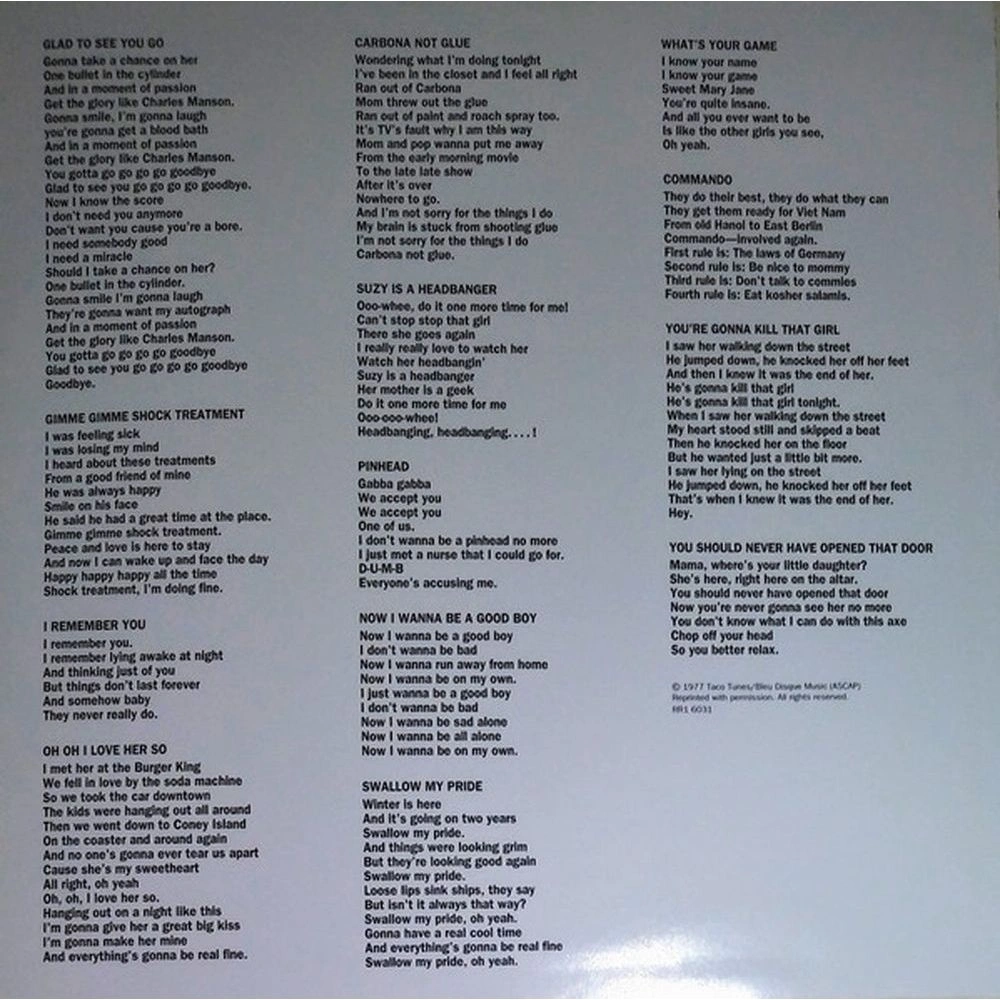Glad To See You Go, Gimmie Gimmie Shock Treatment, I Remember You, Oh Oh I Love Her So, Sheena Is A Punk Rocker, Suzy Is A Headbanger, Pinhead, Now I Wanna Be A Good Boy, Swallow My Pride (Single), What's Your Game, California Sun, Commando, You're Gonna Kill That Girl, You Should Have Never Opened That Door