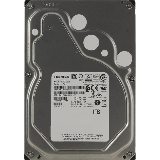 Жесткий диск Toshiba MG04ACA100N емкостью 1 ТB предназначен для массового применения. Диск выполнен в формате 3.5 с интерфейсом подключения SATA 6Gb/s и скоростью вращения 7200rpm.