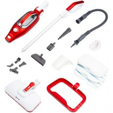 При этом он небольшой, я бы сказала компактный, но очень мощный. Сочетает в себе функции паровой швабры, отпаривателя, дезинфектора и стеклоочистителя. Мы уже все перепробовали. Дом сияет чистотой.