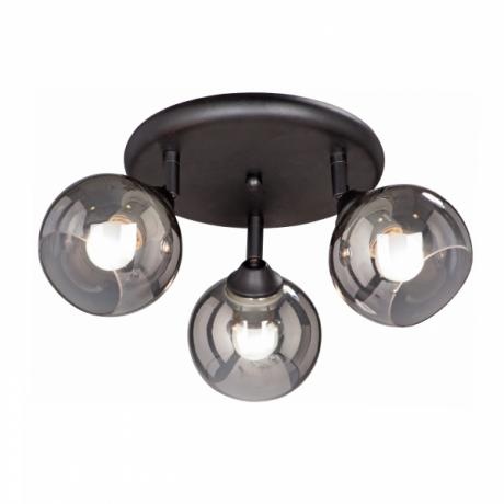 Люстра V4311-1/3PL, 3хЕ27 макс. 60Вт ,количество ламп: 3, максимальная мощность лампы (Вт): 60, цоколь: E27 , лампы в комплекте: нет , площадь освещения, м2:9, цвет основания :черный матовый, тип крепления:планка, Гарантия: 60 месяцев, материал плафонов: стекло , размеры изделия(см):H22 D46