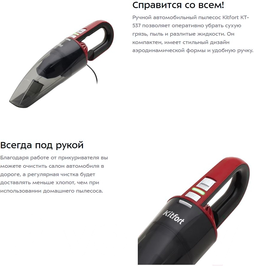 Отзывы о товаре Пылесос автомобильный Kitfort KT-537-2 Black-Red