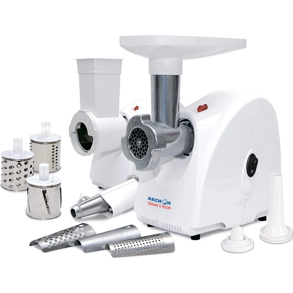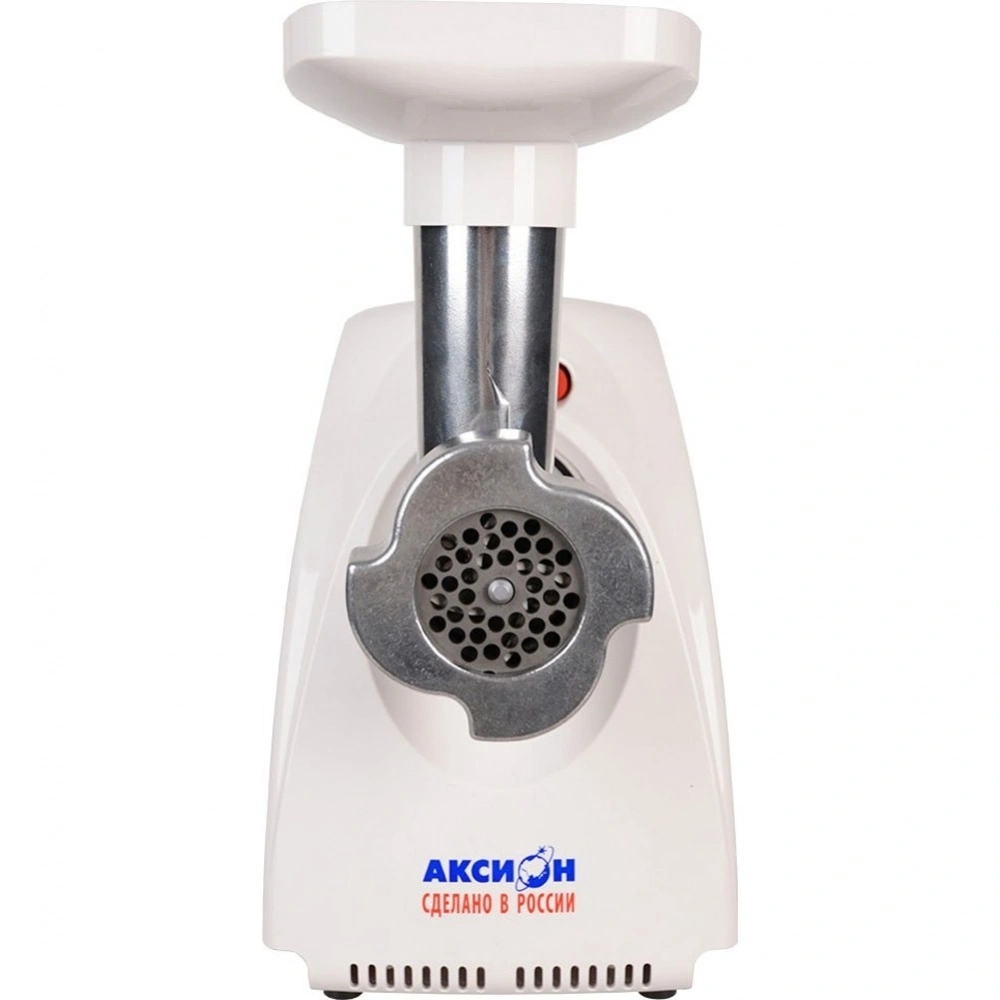 Белая мясорубка Аксион М 32.02 привлекает внимание стильным дизайном и компактными размерами (17x32x26 см), позволяющими использовать посуду с высотой до 11 см. Вес устройства равен 4 кг. Корпус и лоток изготавливаются из прочного пластика. Конструкция отличается быстрой разборкой, что позволяет тщательно промывать все детали.