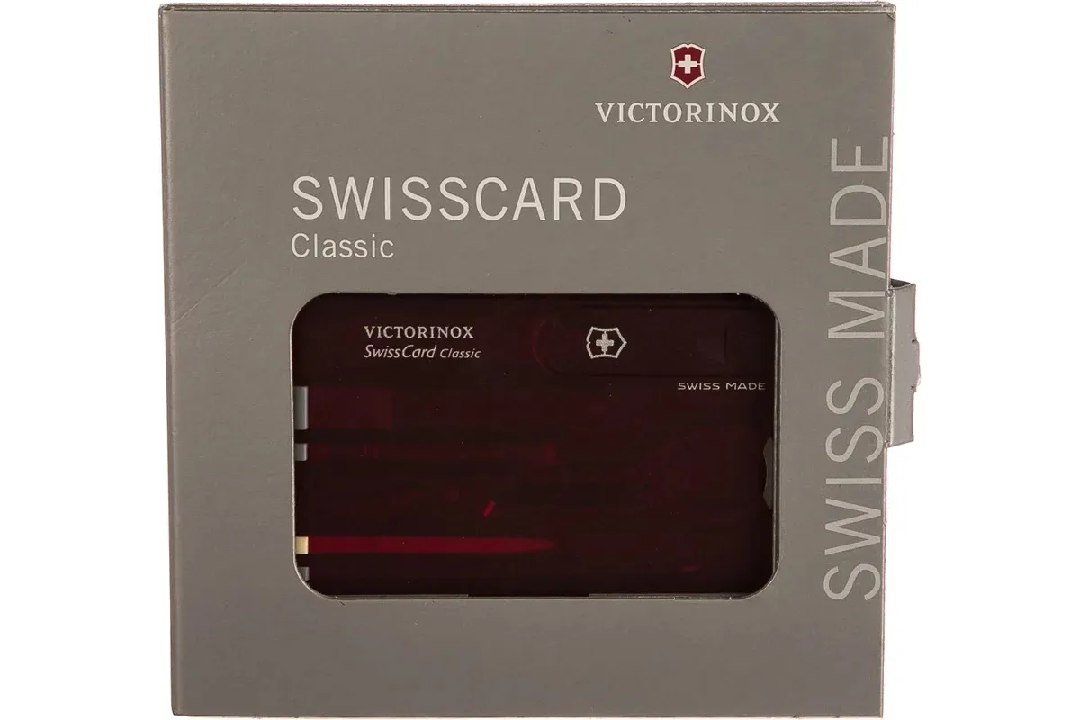 Швейцарская карточка включает в себя набор инструмента, пригодного для проведения ремонта. Небольшие размеры позволяют всегда держать инструмент при себе.